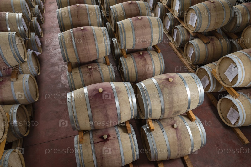Италия, Сицилия, провинция Рагуза, деревянные бочки с вином в винном погребе