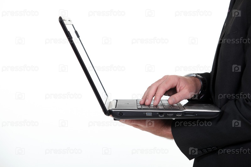 Профиль бизнесмена с ноутбуком
