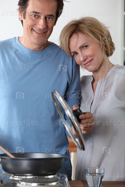 Пара готовит ужин