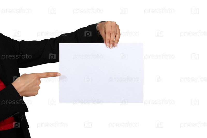 Рука указывает на лист белой бумаги