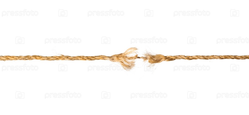 Рвущаяся веревка, изолированная на белом фоне