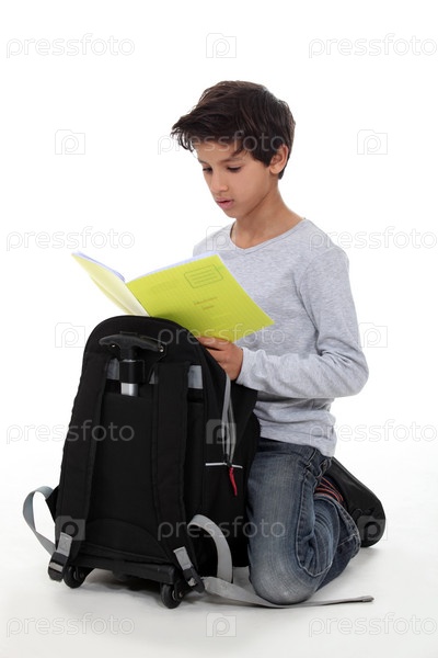 Ребенок с портфелем и ноутбуком