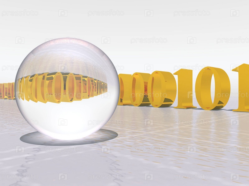 Отражение золотых цифр в прозрачной сфере