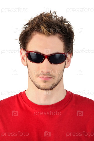 Молодой человек в солнцезащитных очках с красной оправой