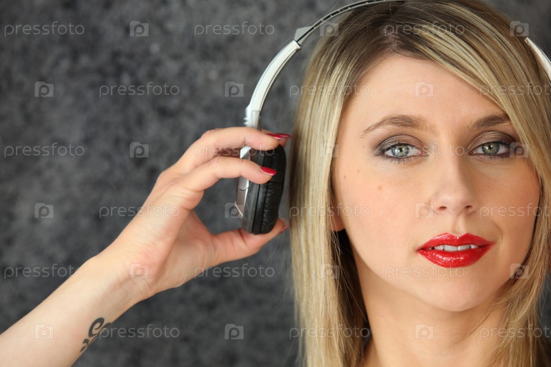Женщина надевает пару наушников