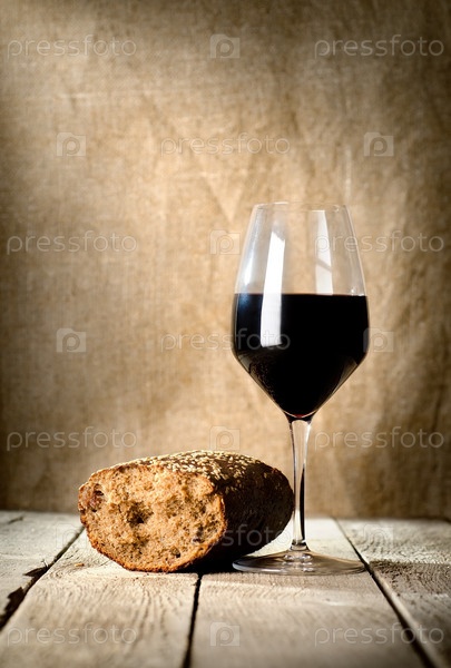 Бокал вина и хлеб