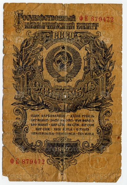 Советская бумажная купюра 1 рубль 1947 года. Оборотная сторона