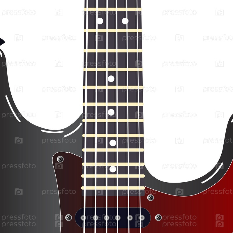 Черная электрическая гитара на белом фоне
