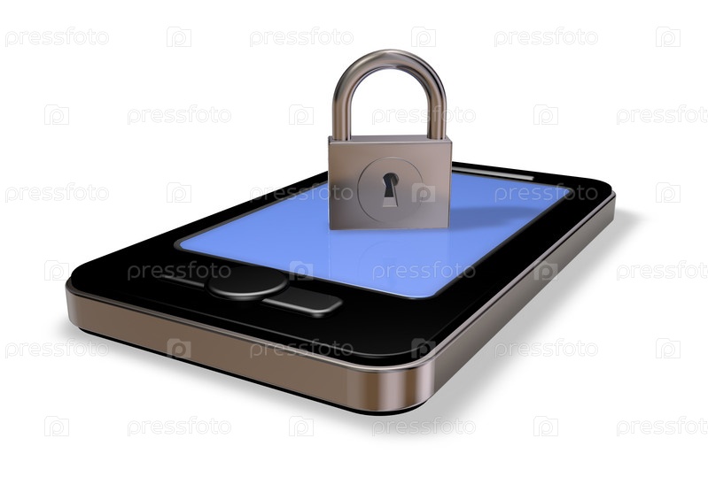 Смартфон и замок на белом фоне. 3d Иллюстрация