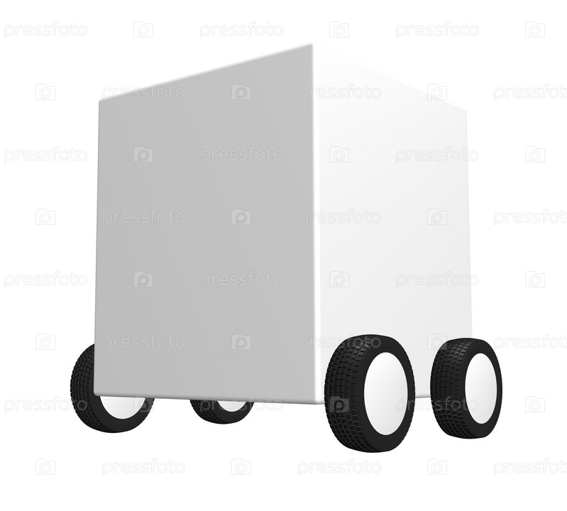Белая коробка на колесах. 3D иллюстрация