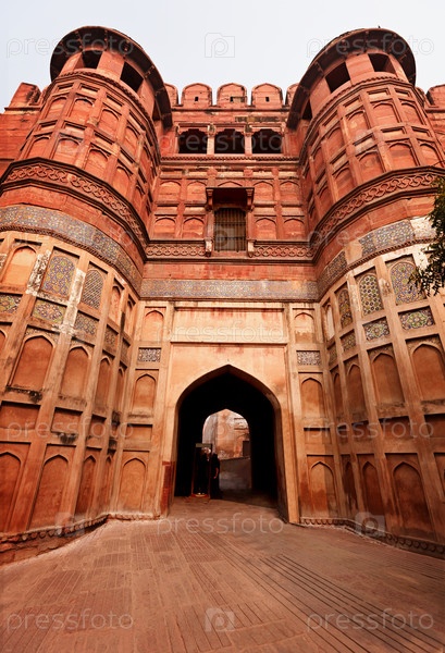 Главный вход в красную крепость Агра, Индия