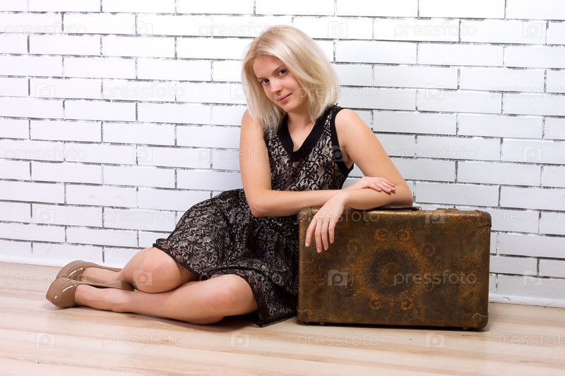Портрет красивой девушки с чемоданом