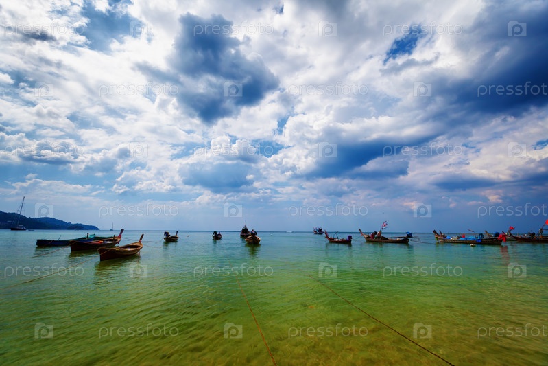 Тайские традиционные деревянные лодки в водах лагуны