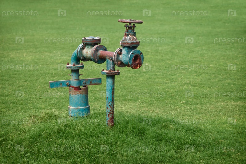 Водопровод на зеленом газоне
