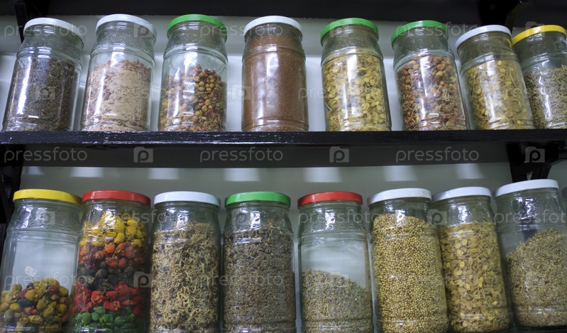 Банки со специями и травами