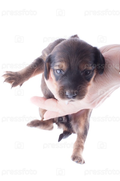 Маленький щенок таксы на белом фоне