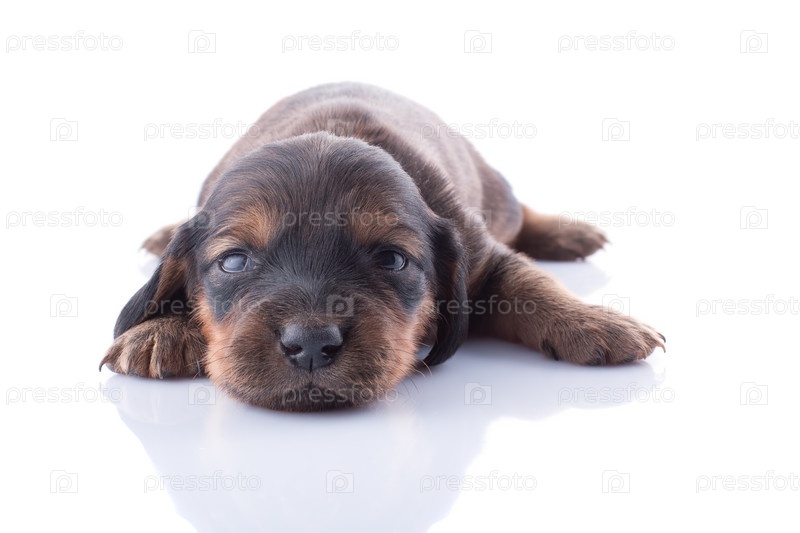 Маленький щенок таксы на белом фоне