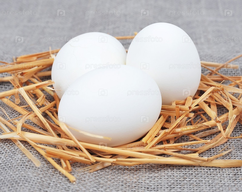 Белые яйца в гнезде