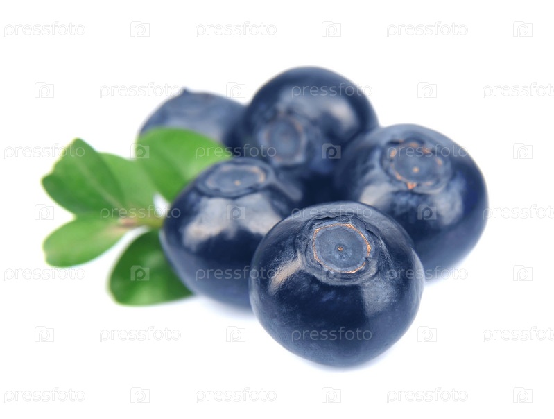 Голубика с листиками мяты на белом