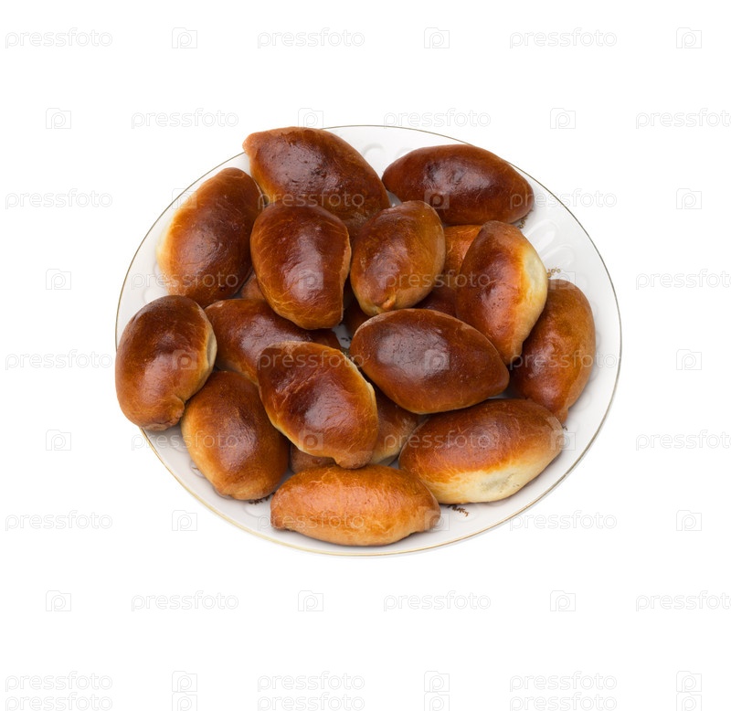 Тарелка с выпечкой (пирожки). Изолировано