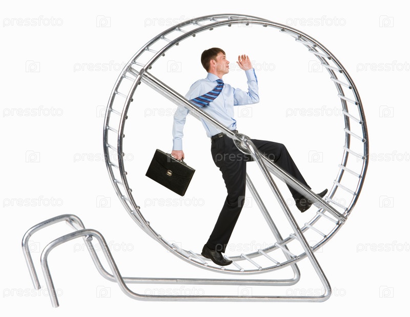 Фото бегущего человека в металлическом колесе на белом фоне
