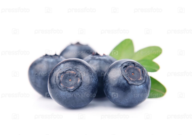 Черника с листьями на белом фоне