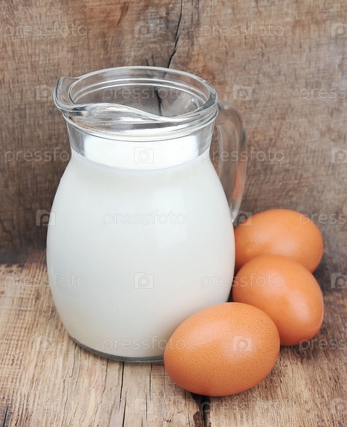 Молоко и яйца на деревянном фоне