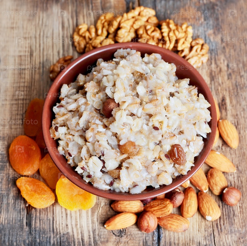 Каша с орехами и сухофруктами. Завтрак. Домашняя кухня