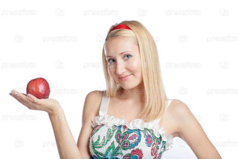 Молодая блондинка с яблоком