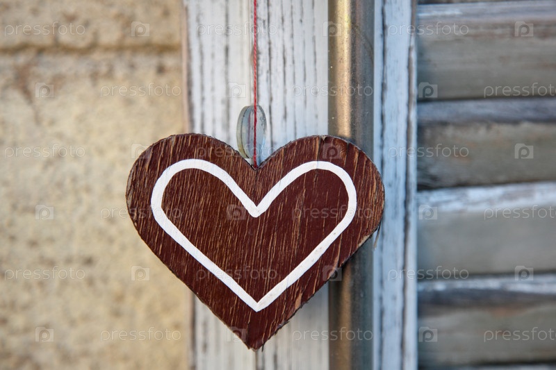 Артефакт в форме сердца на фоне деревянных ставней
