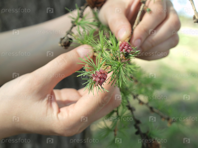 Ветка лиственницы в руках
