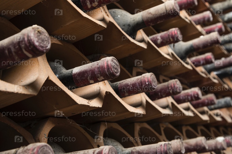 Италия, Сицилия, старые бутылки красного вина в винном погребе