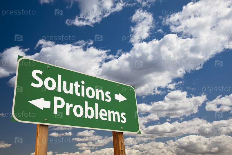 Решения, проблемы. Зеленый дорожный знак на фоне облаков