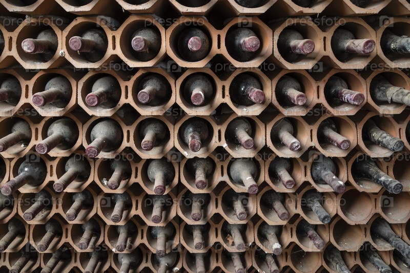 Италия, Сицилия, старые бутылки красного вина в винном погребе