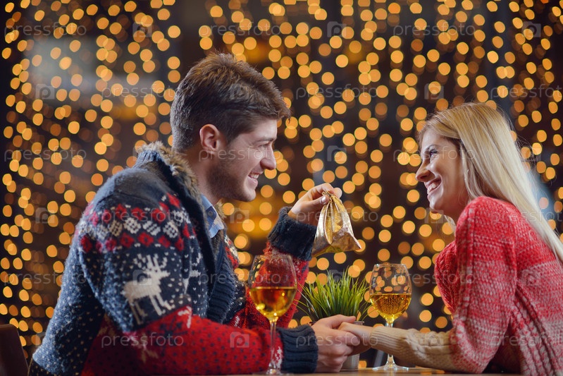 Молодой человек дарит подарок девушке