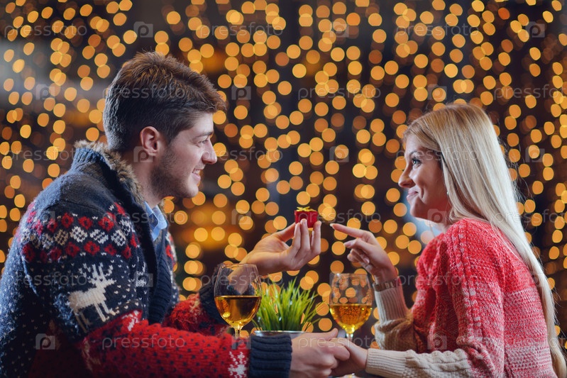 Молодой человек дарит подарок девушке