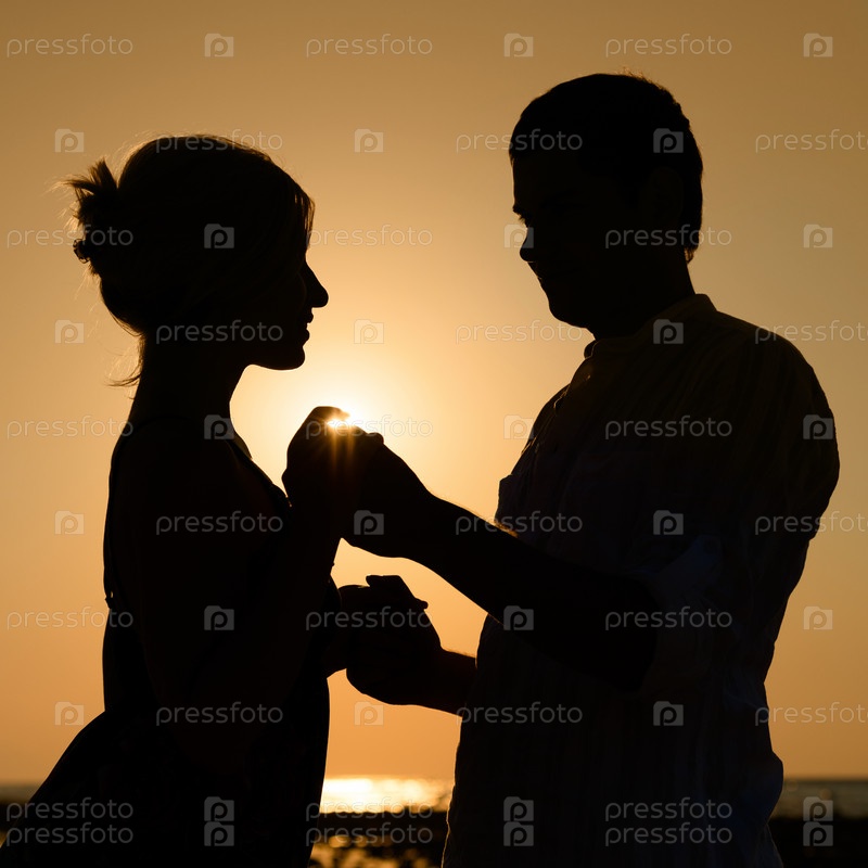 Силуэт влюбленной пары на закате
