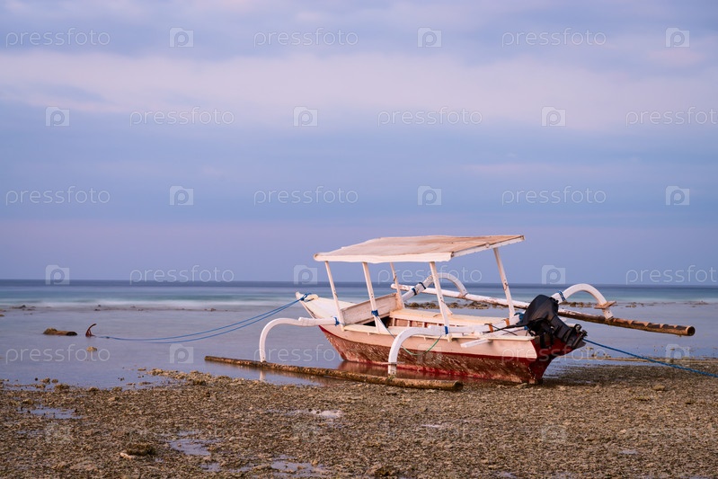 Индонезийская лодка на пляже во время отлива