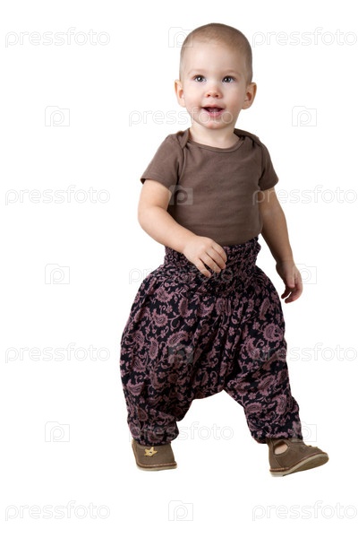 Ребенок идет на светлом фоне