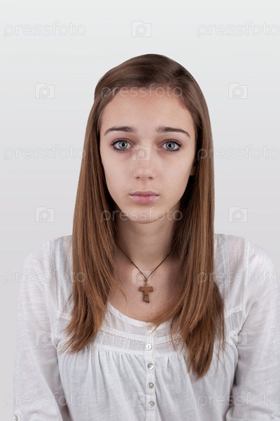 Портрет молодой женщины-подростка на белом