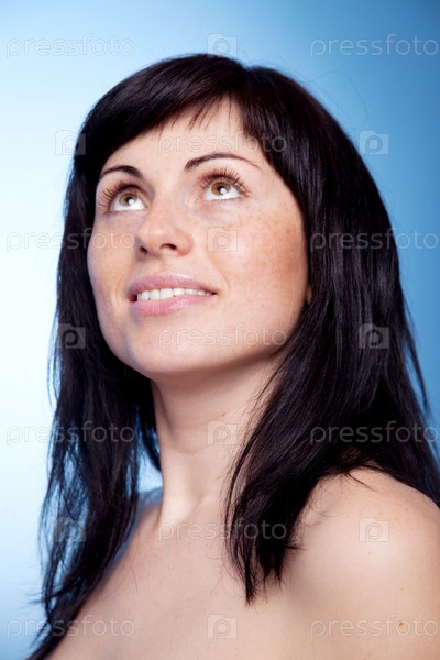 Портрет молодой женщины, смотрящей вверх