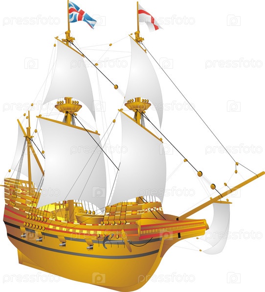 Галеон Mayflower на белом фоне