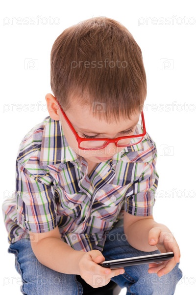Умный мальчик играет с сенсорным смартфоном