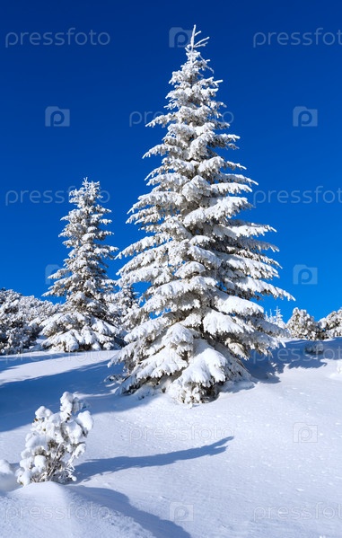 Утренний зимний горный пейзаж