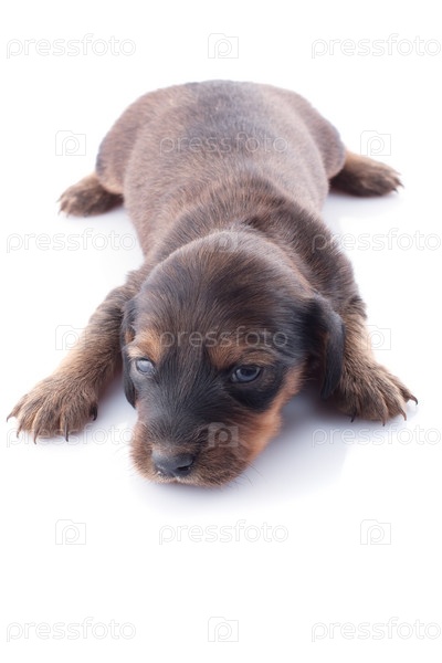 Маленький щенок таксы на белом фоне