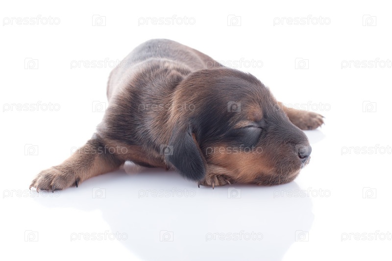 Маленький щенок таксы на белом фоне