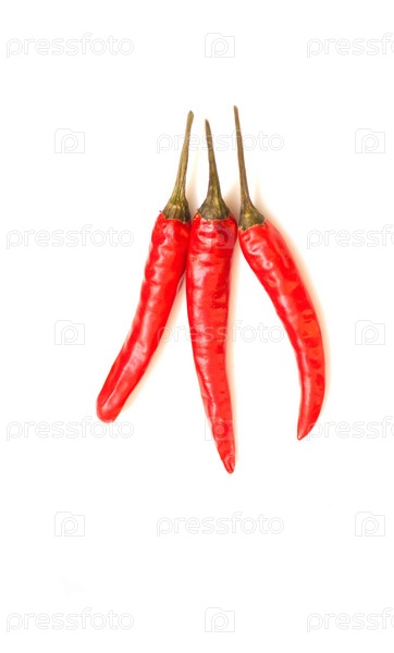 Три красных перца чили, изолированных на светло-сером фоне
