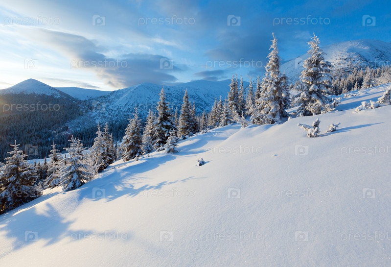 Утренний зимний горный пейзаж