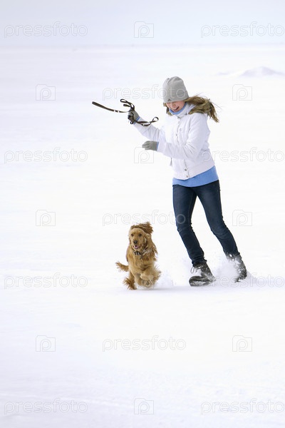 Девушка на прогулке со спаниелем