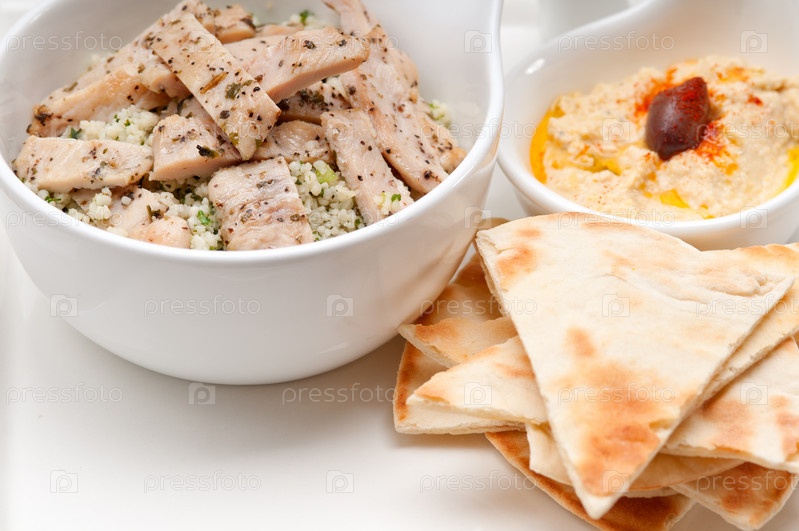 Куриные табулии, кускус, хумус